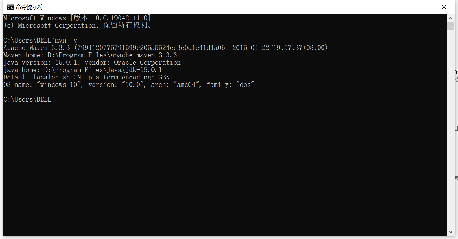 配置之后,打开命令窗口输入:mvn -v
