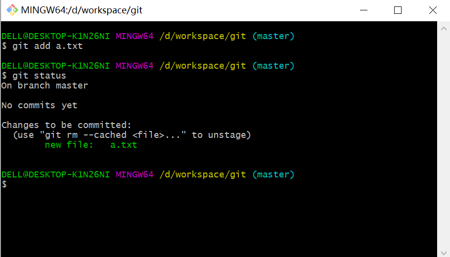 (2) 接下来输入git add a.txt 之后输入git status查看操作状态