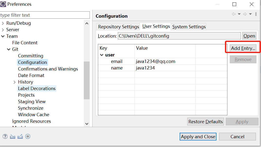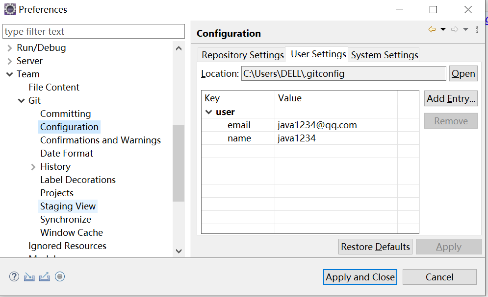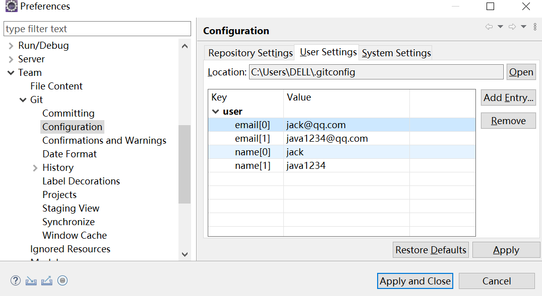 (1)点击菜单的Windows --> Team->Git->Configuration