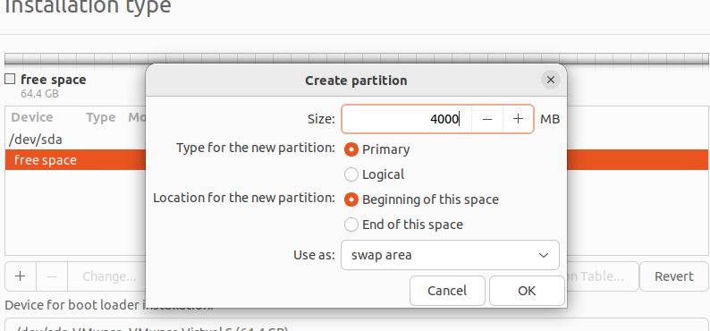 对于 4GB RAM,将大小设置为 4000MB(休眠时加倍)