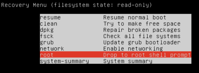 选择“… (recovery mode)”(耐心等待,很耗时间)