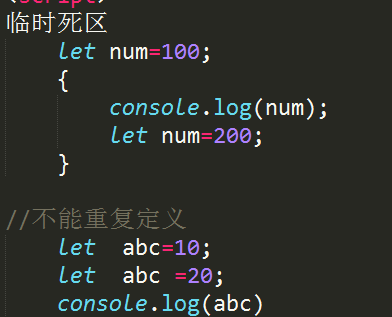 2.声明在{}内部的变量无法在外部使用(块级作用域)】、