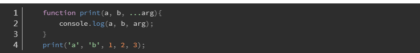 1 let arr = [1, 2, 3, 4, 5]; 2 console.log(arr); //打印[1, 2, 3, 4, 5]; 3 console.log(...arr);//会变成散列的值: 1, 2, 3, 4, 5