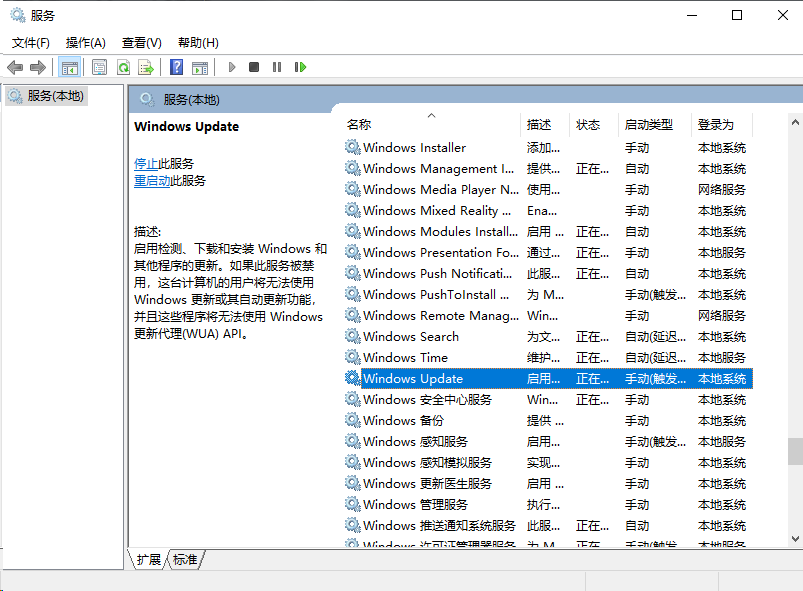在服务管理器中查找“Windows Update”(Windows更新)服务,双击选中该服务。