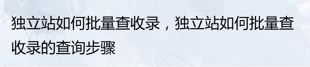 独立站如何批量查收录,独立站如何批量查收录的查询步骤
