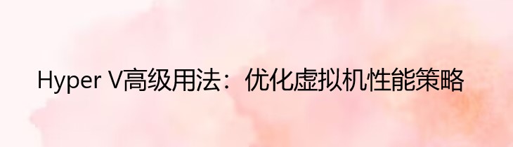 Hyper V高级用法:优化虚拟机性能策略