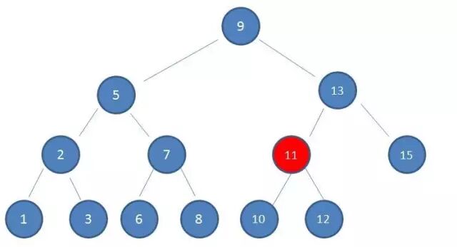 假设初始的二叉查找树只有三个节点,根节点值为9,左孩子值为8,右孩子值为12: