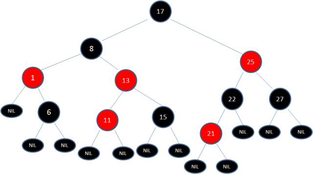 这样就结束了吗?并没有。因为其中两条路径(17 -> 8 -> 6 -> NIL)的黑色节点个数是4,其他路径的黑色节点个数是3,不符合规则5。