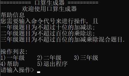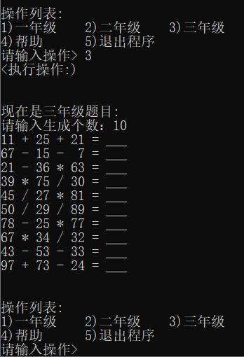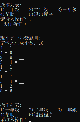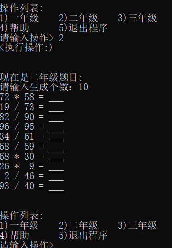 | 作业正文 | 编写一个控制台口算题生成(不含答案)程序要求使用上周的控制台菜单程序进行选择 |