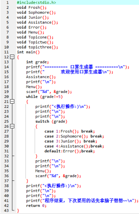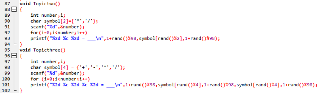 大作战3与大作战2基本相同,所做无非就是在一、二、三年级后面加上它们所属的题目。而本次作业的难重点就在于如何便编写它们所属题目,此处就应该是使用rand函数来产生随机数,并以规律进行排列。为此我查阅了C语言书籍(上述文献)学习此知识点。