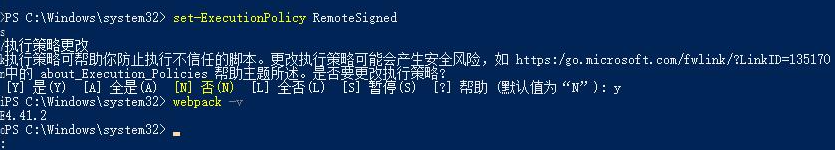 在管理员中执行,webpack -v ,报错:webpack:无法加载文件