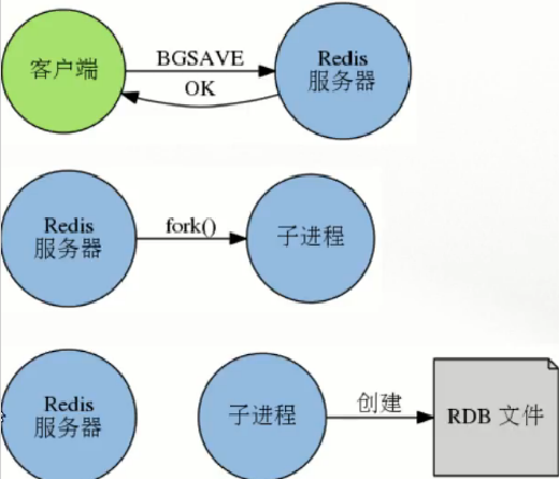 Redis会folk()一个新的子进程来创建RDB文件,子进程处理完后会向父进程发送一个信号,通知它处理完毕