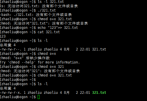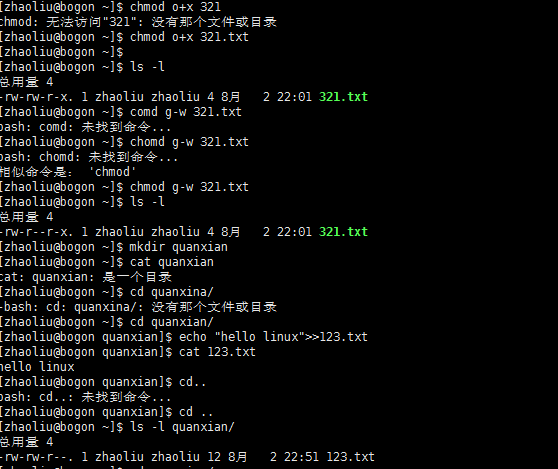 10、创建zhaoliu非root用户,echo追加写入,chmod修改添加权限,cat,查看
