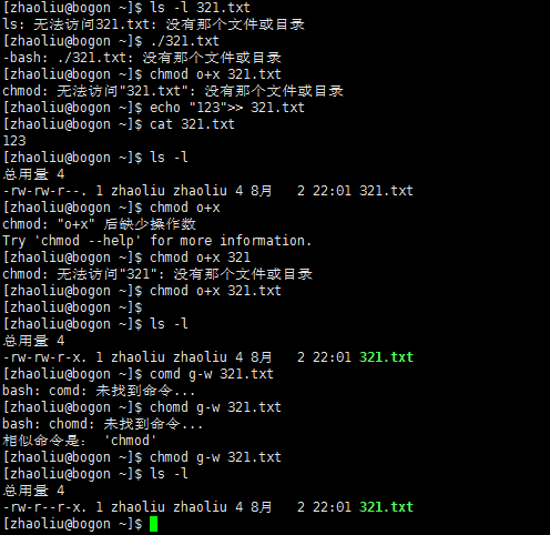 2、ls -l 321.txt,显示321.txt权限