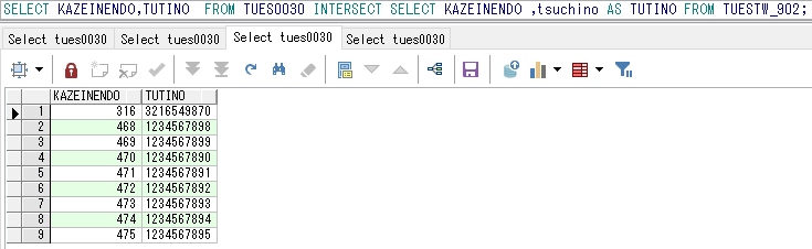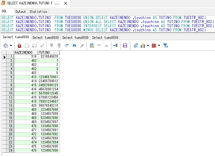 minus:取得两个结果集的差集(显示存在第一个结果集中而不存在第二个结果集中的数据)