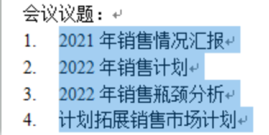5.选中“会议议题”中的内容,单击开始选项卡中段落选项框中的编号