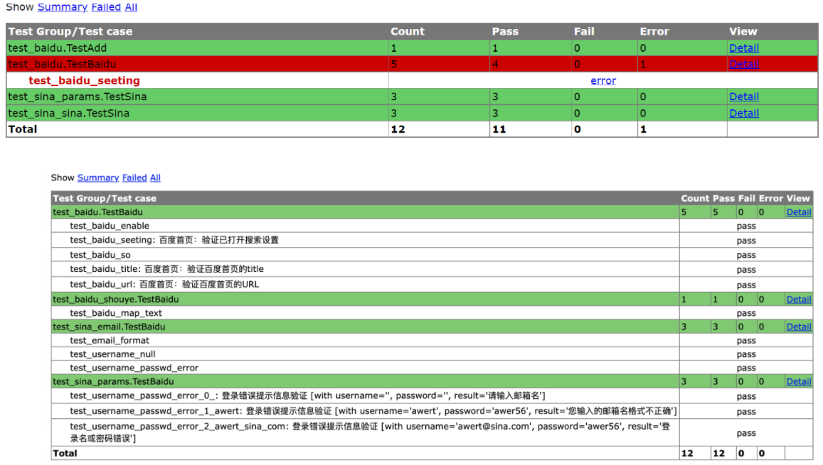 测试报告(TestReport):就是执行所有测试用例后的结果信息