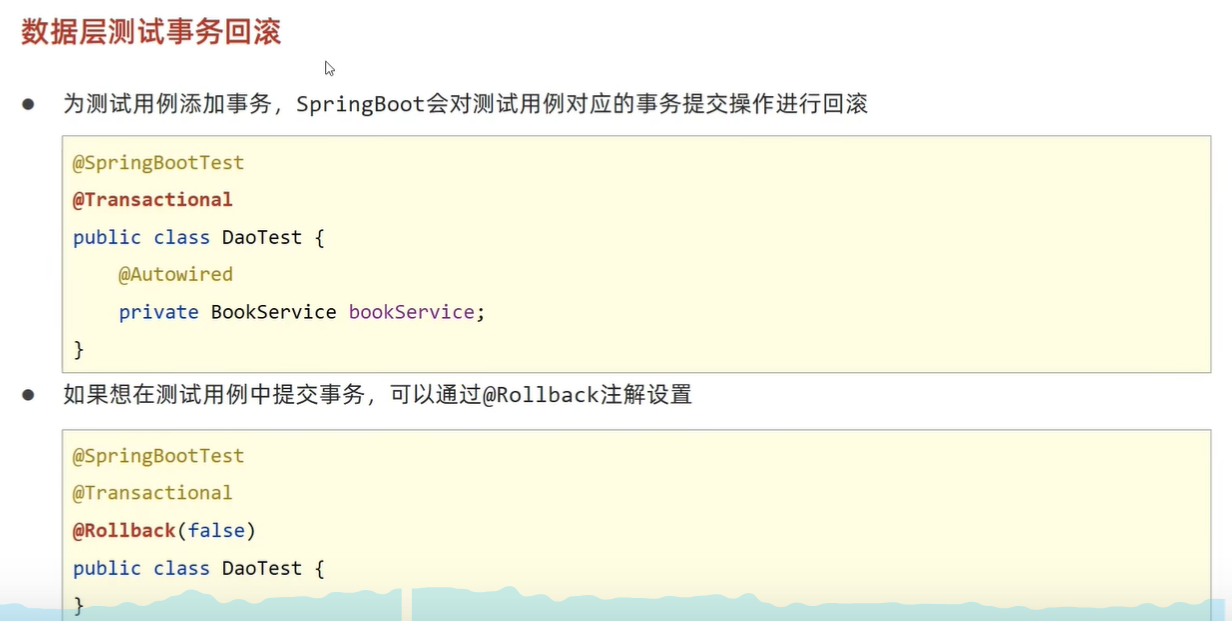 数据层测试事务回滚--目的就是不让测试的代码在数据库中产生垃圾数据