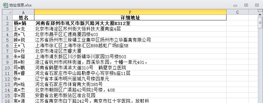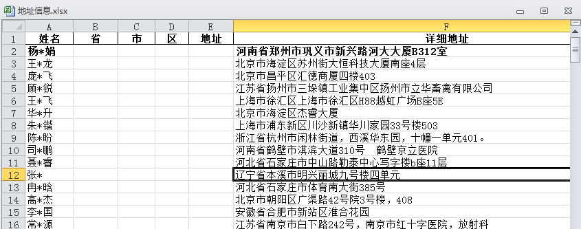 4.把省、市、区、地址 写入到excel表格对应的位置
