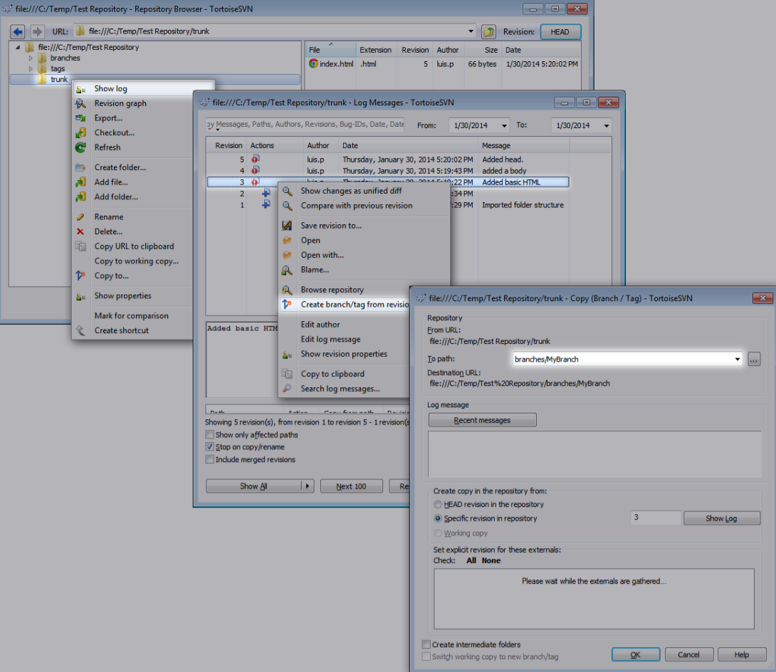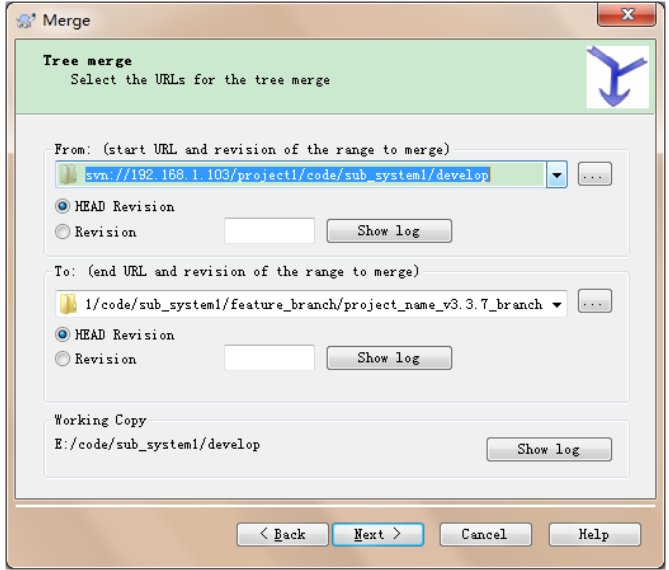 From:选择的目标文件夹,即需要“合并到”的svn目录