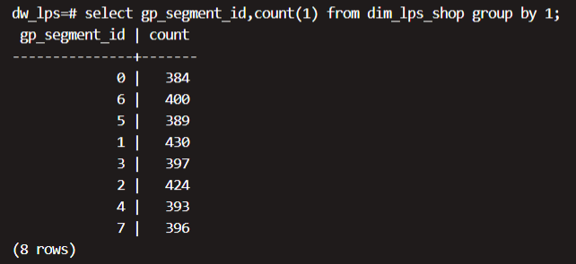 select gp_segment_id,count(1) from table_name group by 1;