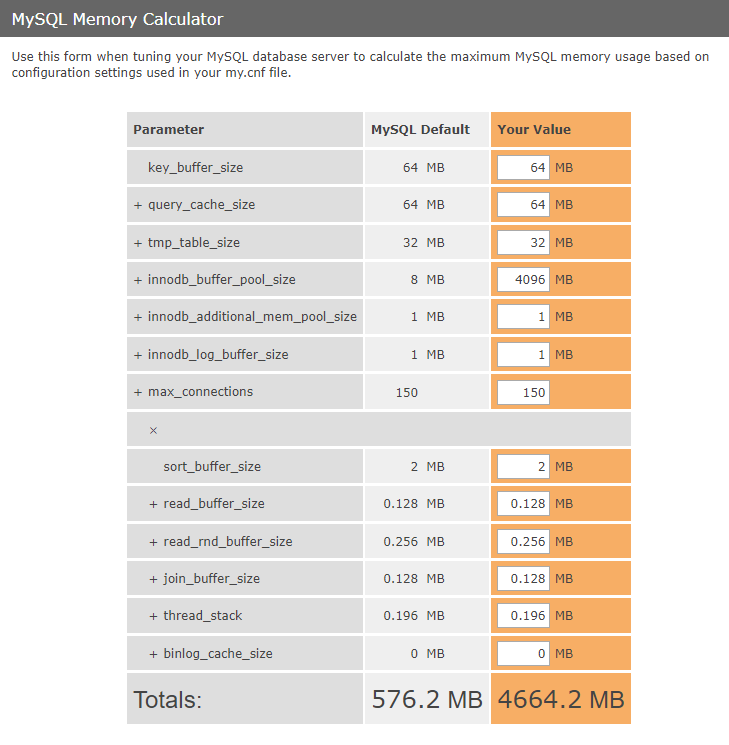 mysql内存计算器:http://www.mysqlcalculator.com/
