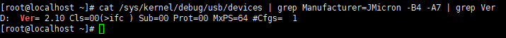 cat /sys/kernel/debug/usb/devices | grep Manufacturer=设备名 | grep Ver