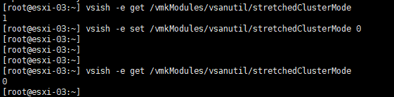 vsish -e set /vmkModules/vsanutil/stretchedClusterMode 0