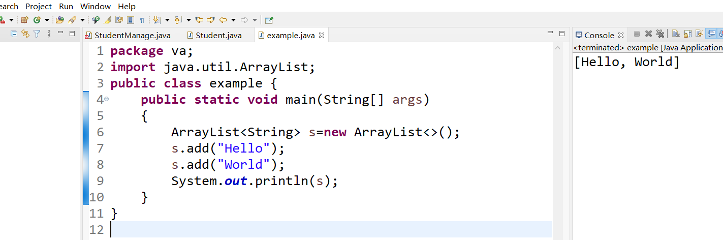 array.add("Hello"); array.add("World"); 输出结果是[Hello,World]