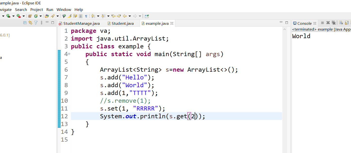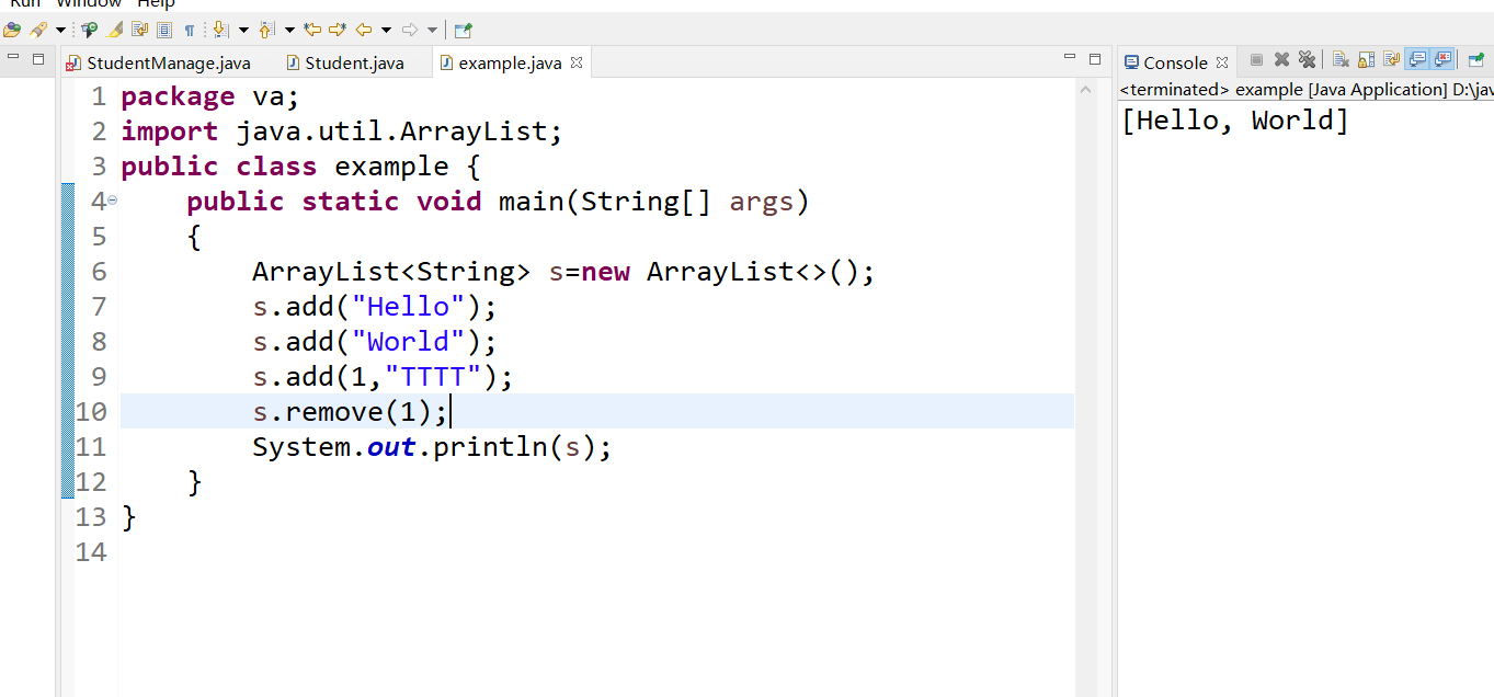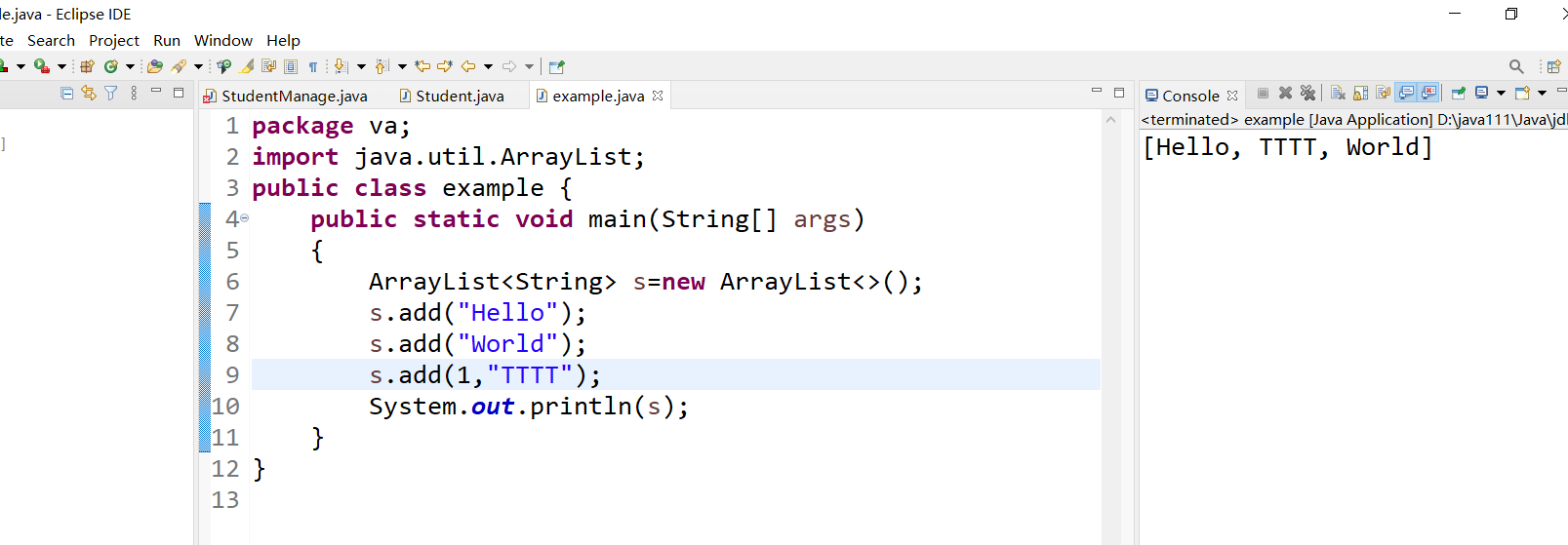 array.add(1,"TTTT");(在指定位置添加)[Hello,TTTT,World]