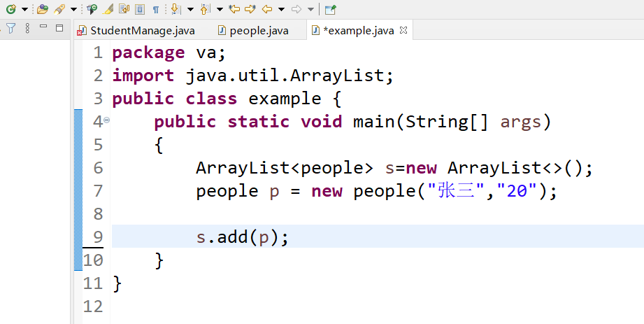 2.创建空的集合对象 ArrayList<对象类型(也可以是类类型)> array(对象名) = new ArrayList<>();