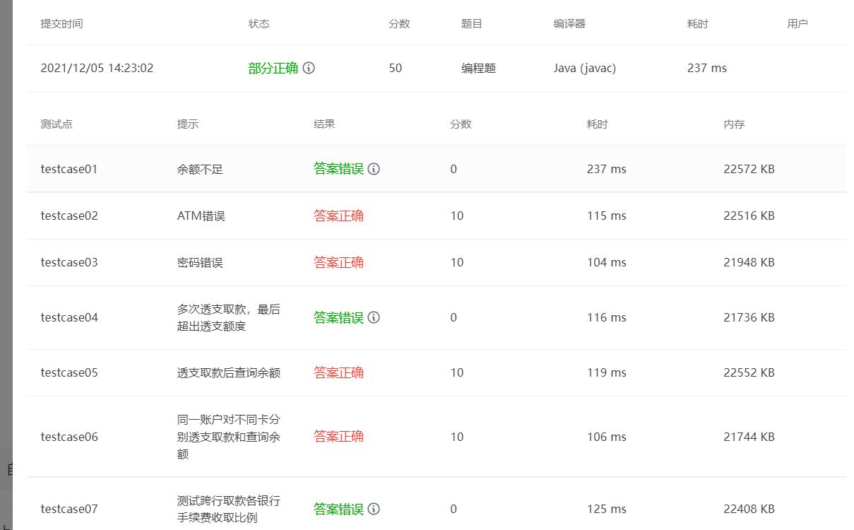 而在题目集8和9中,各自一道题目,设计ATM类,难度适中,没有特别难的点,也是很考验我们的耐心的题目,需要足够细心才能找到自己错误的点。
