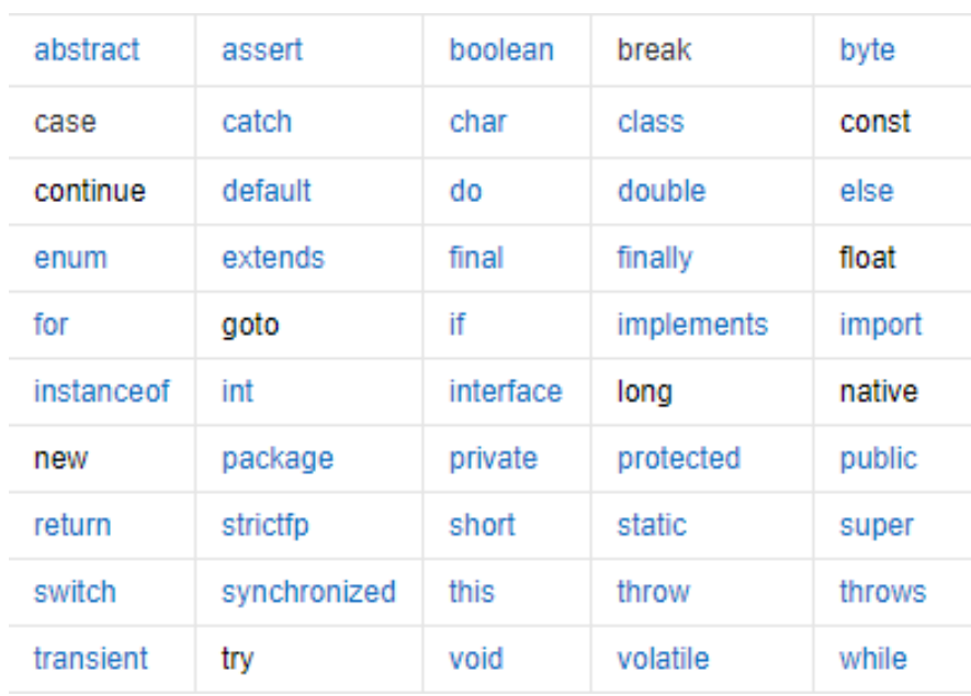 Java 所有的组成部分都需要名字。类名,变量名以及方法名都被称为标识符