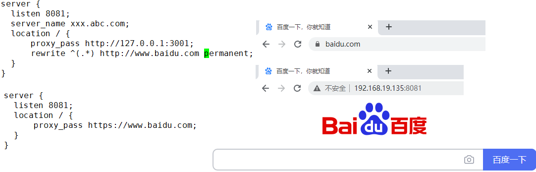 rewrite会改变浏览器中的地址 而proxy_pass不会浏览器原来的地址