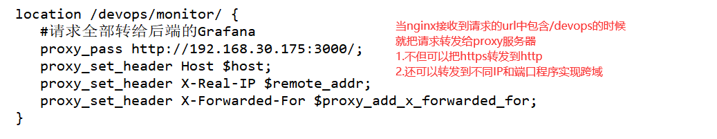 跨域配置主要是在开发时页面域名(localhost)和接口域名(api.xxx.com)不一致导致的,通过nginx的location和proxy_pass.将指定请求代理到对应服务商,从浏览器的角度来看,请求的都是同一个域名,也就不存在跨域限制了.