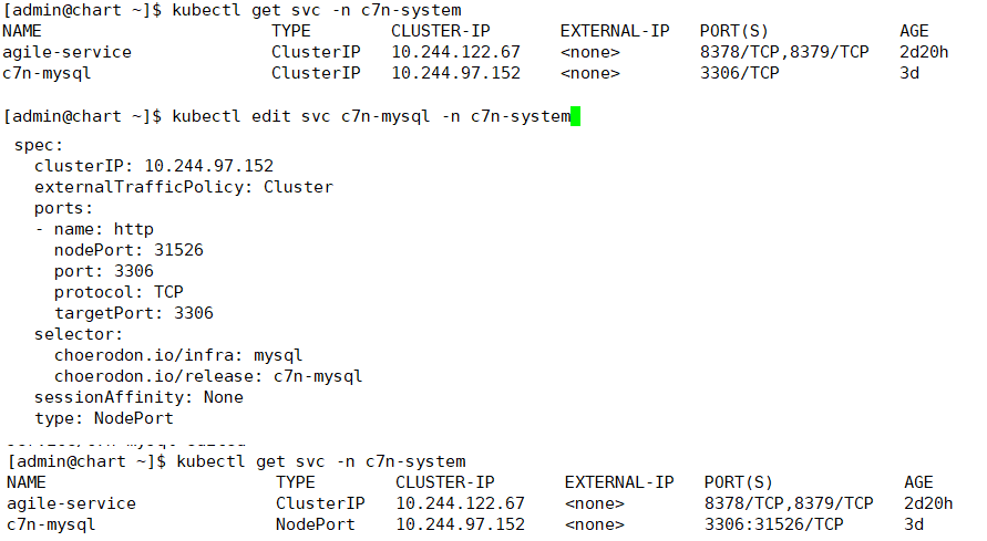 kubectl edit svc c7n-mysql -n c7n-system