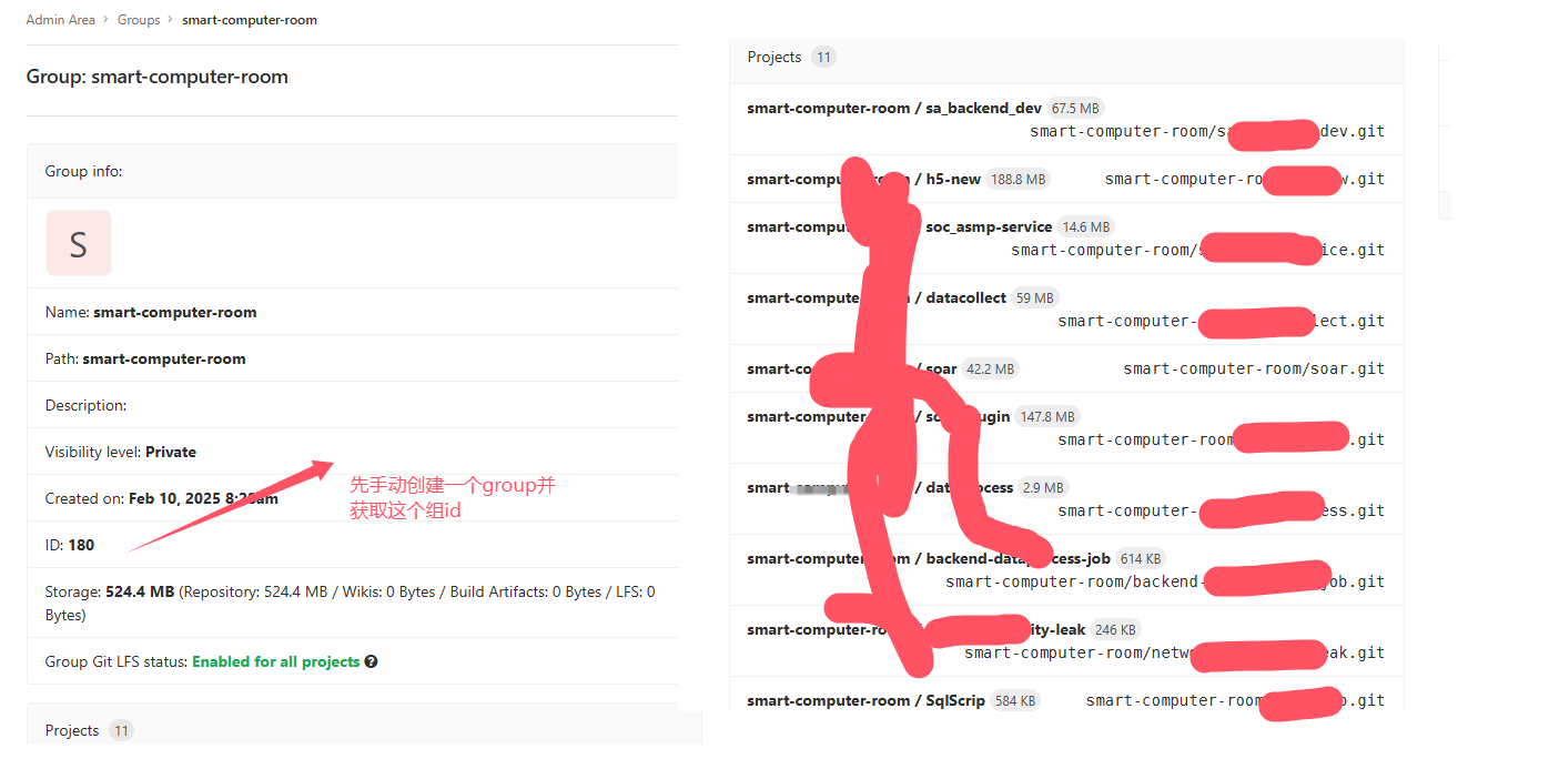 #!/bin/bash # GitLab API URL GITLAB_URL="https://192.168.30.111:8090/api/v4" # API Token API_TOKEN="345345345345345345345" #这是手动创建的group id GROUP_ID=180 PROJECTS=("sa_backend_dev" "h5-new" "soc_asmp-service" "datacollect" "soar" "soar_plugin" "dataprocess" "backend-dataprocess-job" "network-security-leak" "SqlScrip" "soc_ai") for project in "${PROJECTS[@]}"; do if [[ -n $GROUP_ID ]]; then GROUP_PARAM="group_id=$GROUP_ID" else GROUP_PARAM="path=$GROUP_PATH" fi curl -k --request POST "$GITLAB_URL/projects" \ --header "PRIVATE-TOKEN: $API_TOKEN" \ --header "Content-Type: application/json" \ --data "{ \"name\": \"$project\", \"namespace_id\": $GROUP_ID }" done