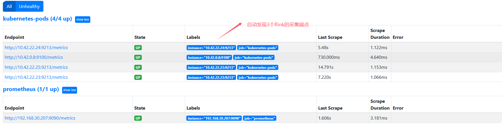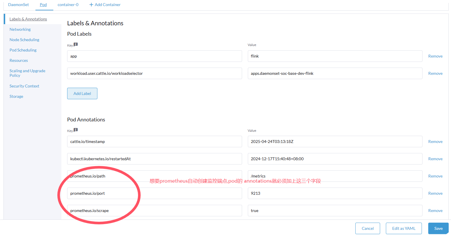 global: scrape_interval: 15s # Set the scrape interval to every 15 seconds. Default is every 1 minute. evaluation_interval: 15s # Evaluate rules every 15 seconds. The default is every 1 minute. # scrape_timeout is set to the global default (10s). # Load rules once and periodically evaluate them according to the global 'evaluation_interval'. rule_files: # - "first_rules.yml" # - "second_rules.yml" # A scrape configuration containing exactly one endpoint to scrape: # Here it's Prometheus itself. scrape_configs: # The job name is added as a label `job=<job_name>` to any timeseries scraped from this config. - job_name: 'prometheus' static_configs: - targets: ['192.168.30.207:9090'] - job_name: "kubernetes-pods" kubernetes_sd_configs: - role: pod # 监听 Pod 资源变化 relabel_configs: # 筛选含注解 prometheus.io/scrape=true 的 Pod - source_labels: [__meta_kubernetes_pod_annotation_prometheus_io_scrape] regex: "true" action: keep # 动态生成抓取地址(IP:Port) - source_labels: [__address__, __meta_kubernetes_pod_annotation_prometheus_io_port] action: replace regex: ([^:]+)(?::\d+)?;(\d+) replacement: $1:$2 target_label: __address__ # 自定义指标路径 - source_labels: [__meta_kubernetes_pod_annotation_prometheus_io_path] target_label: __metrics_path__ regex: (.+) replacement: $1