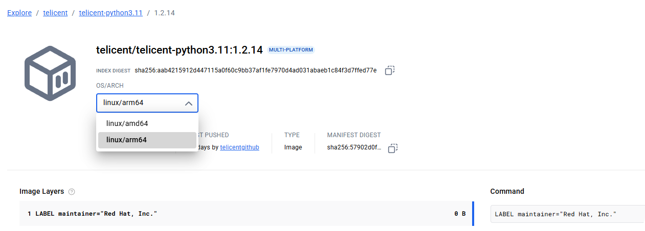 docker pull telicent/telicent-python3.11 下载当前宿主机cpu架构的镜像