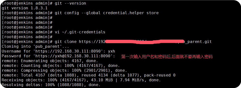 git config --global credential.helper store