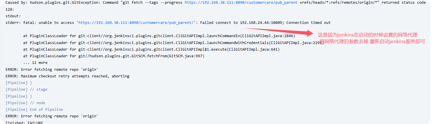 配置代理启动jenkins服务中所有的http和https请求都会走代理,这样有可能会影响通过https请求去拉取远程仓库的代码