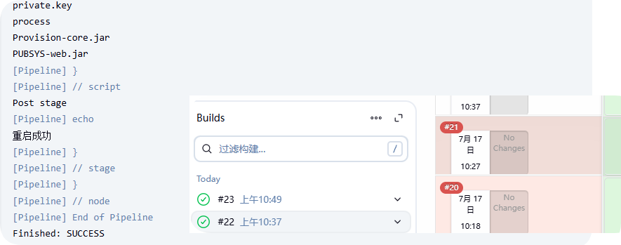 pipeline { agent any stages { stage('获取源代码'){ steps { git branch: "master", url: 'https://192.168.30.111:8090/customercare/pub_parent.git' } post { success { print("getCode success") } } } stage("编译源码包"){ steps { script { sh "/home/admin/maven/apache-maven-3.6.3/bin/mvn clean -DskipTests=true install" } } post { success { print("Build success......") } } } stage("部署服务包"){ steps { script { sh "scp ./PUBSYS-web/target/PUBSYS-web.jar ccapp01@192.168.2.75:/home/ccapp01/" } } post { success { print("部署成功") } } } stage("重启服务"){ steps { script { sh "ssh ccapp01@192.168.2.75 'ls'" } } post { success { print("重启成功") } } } } }