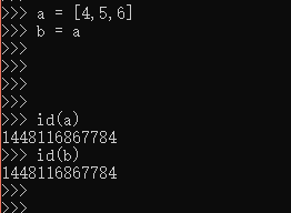 如上图,a = b,这种方式赋值只是赋值的引用(内存地址),a和b都指向了同一个内存空间,所以它们的id相同(地址相同),这种就是浅拷贝