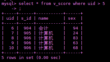 5.在视图中可以使用OREDR BY,但是如果视图内已经使用该排序子句,则视图的ORDER BY将覆盖前面的ORDER BY。