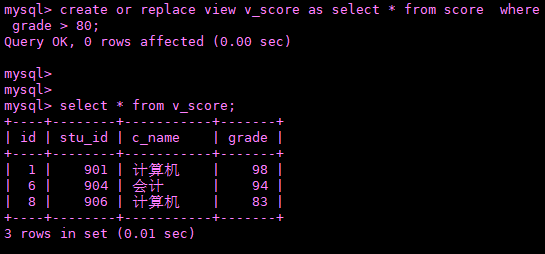 如果视图存在,需要修改视图,则添加or replace,否则会报视图存在错误!!