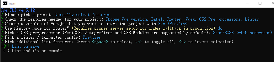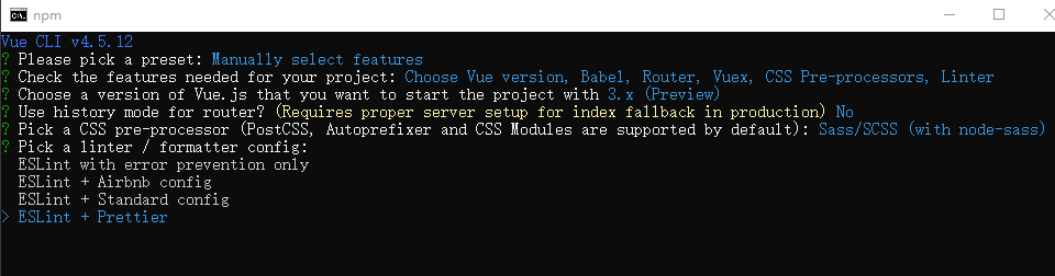 7、代码验证模式,我们选择最后一个 ESLint + Prettier