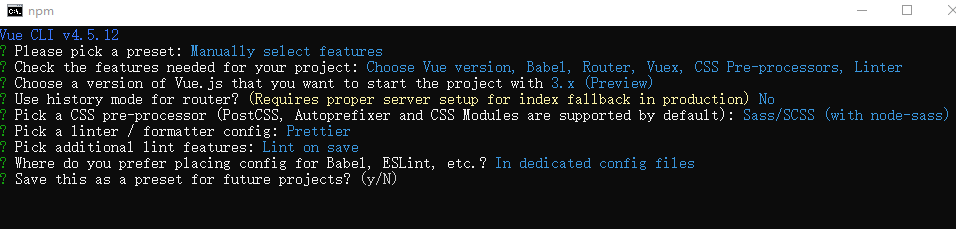 10、是否保存创建的选项,保存的话,下次创建也会按这个选择来创建,我们先选择 n 不保存
