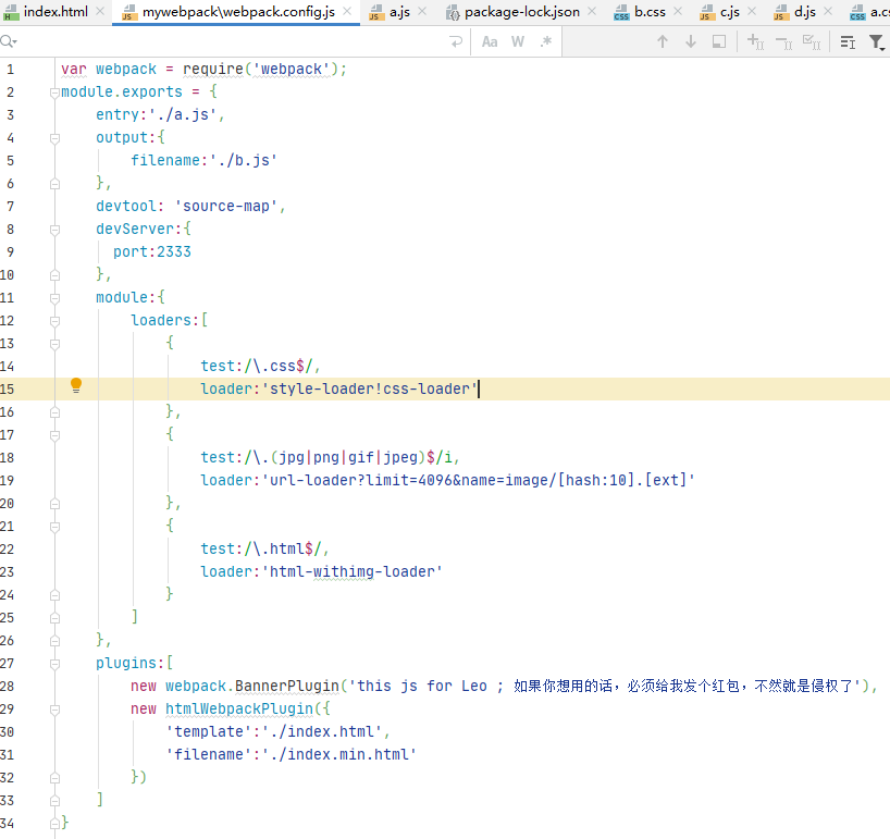 webpack.config.js中配置相关信息