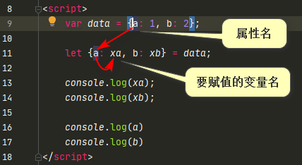 let{a:xa,b:xb} = data;