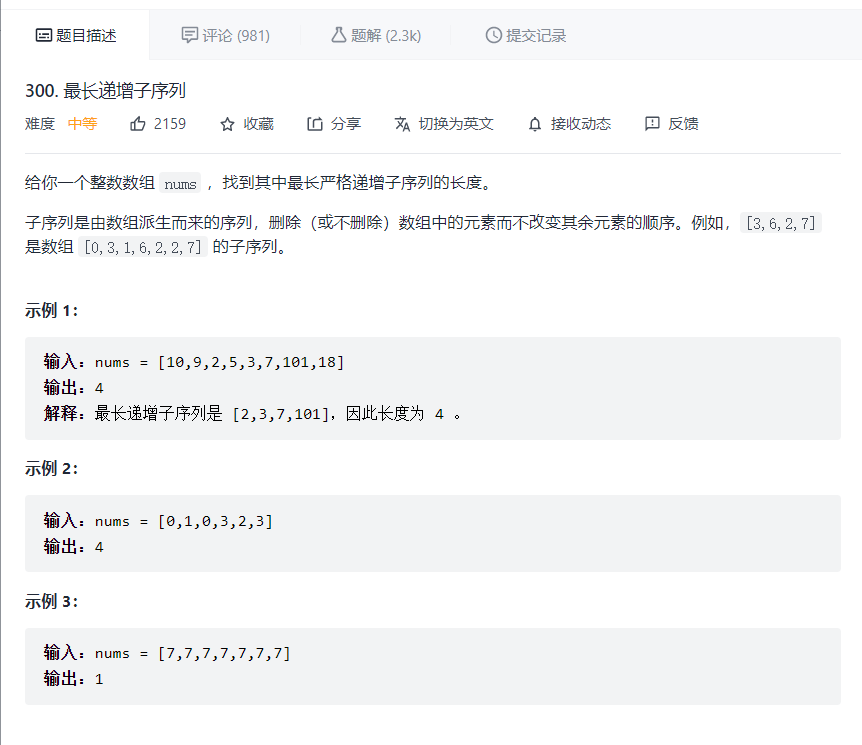 > 原题链接: [300. 最长递增子序列 - 力扣(LeetCode)]